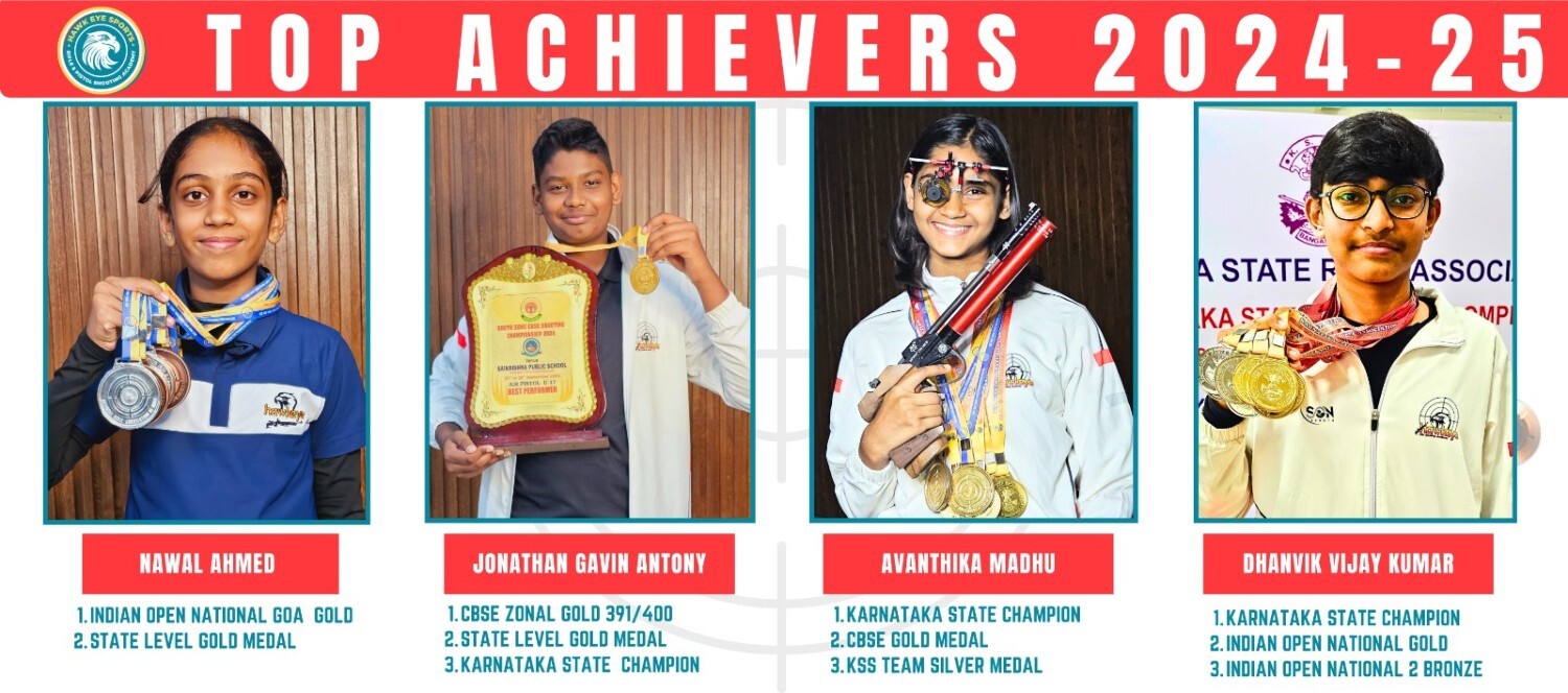 Hawk-Eye Rifle & Pistol Shooting Academy is a premier training center for Air Rifle and Air Pistol shooting, with two branches in Bengaluru. The academy features a world-class infrastructure with a total of 40 shooting lanes (20 lanes at each branch) in a fully equipped 10-meter indoor air-conditioned range, installed with advanced SIUS electronic targets.
