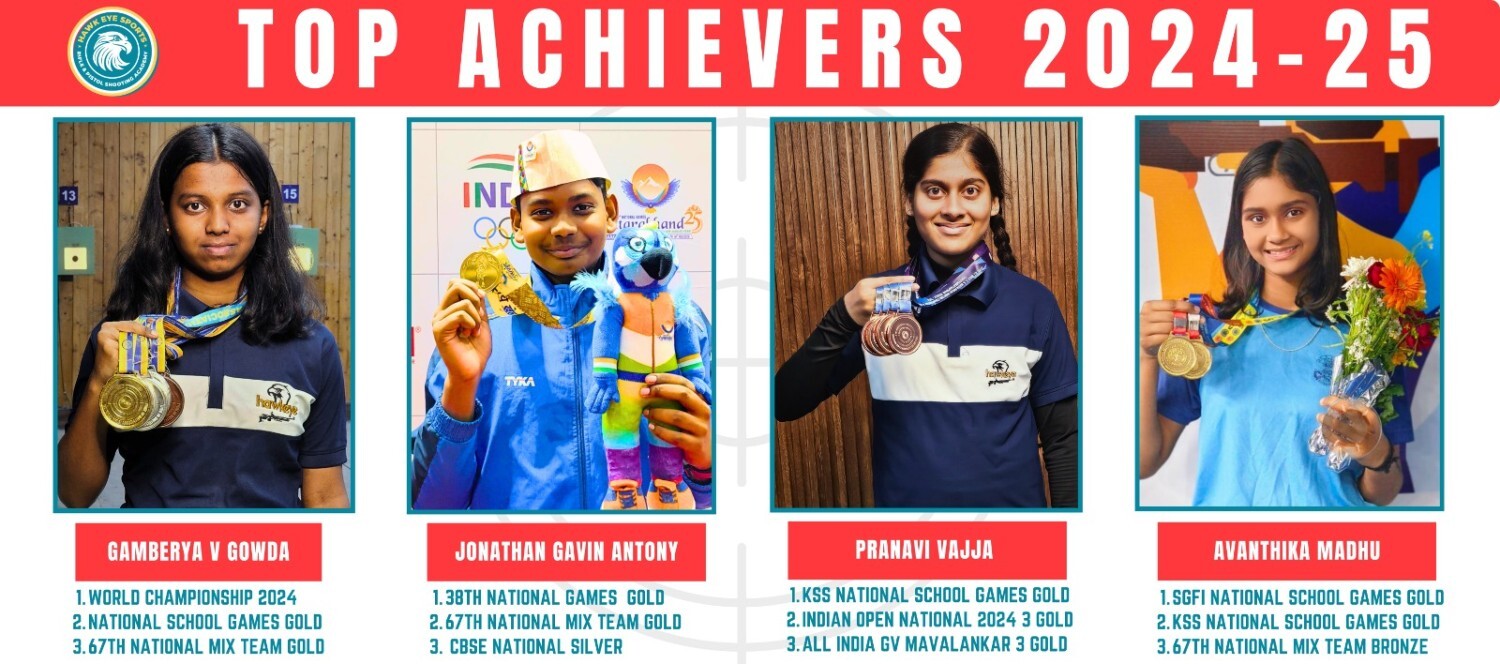 Hawk-Eye Rifle & Pistol Shooting Academy is a premier training center for Air Rifle and Air Pistol shooting, with two branches in Bengaluru. The academy features a world-class infrastructure with a total of 40 shooting lanes (20 lanes at each branch) in a fully equipped 10-meter indoor air-conditioned range, installed with advanced SIUS electronic targets.